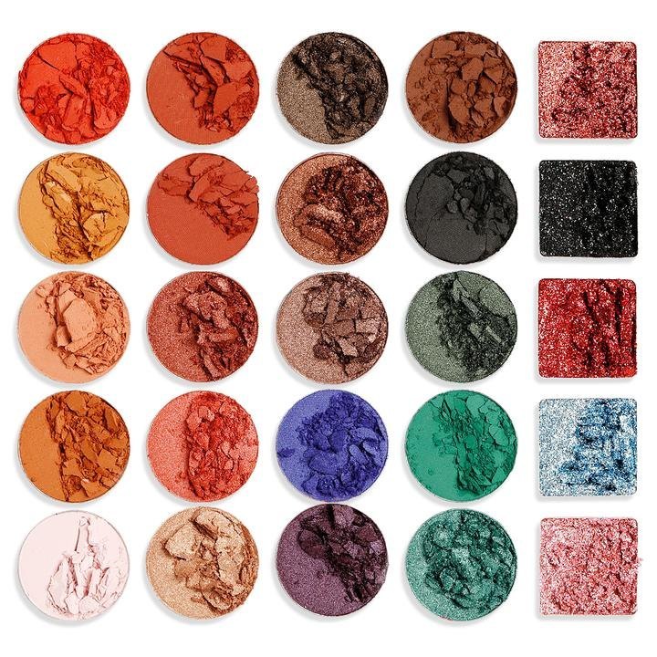 25 color include shimmer & warm color and the glitter eyeshadow all in 1 pc portable palette. Portable and convenient to use.