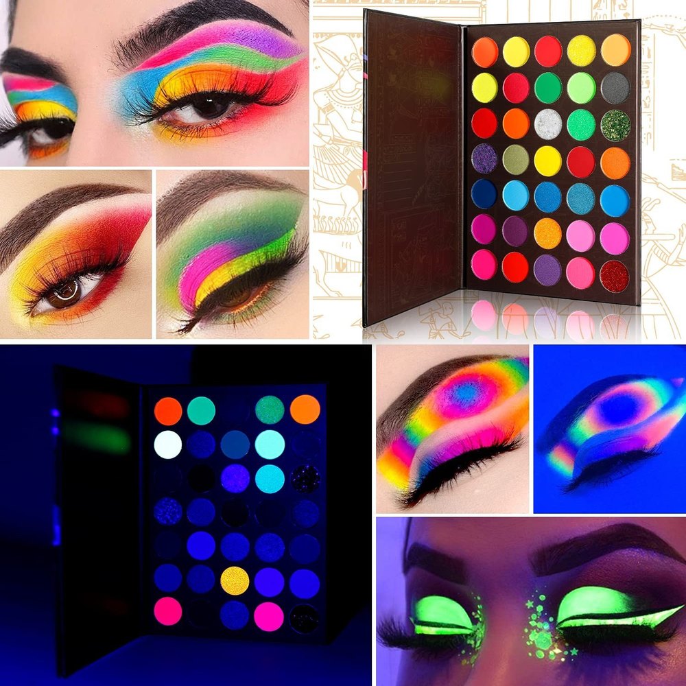 DE'LANCI 2021 NEW EYE SHADOW PALETTE--LUMINOUG PARTY The neon rainbow eyeshadow palette offers a colorful range of vibrant pigments in DE'LANCI's most-coveted, long-lasting, easy-to-blend, ultra-matte formula. Create endless eye-catching, on-trend looks,add a pop of neon to brighten up your everyday look. Layer high-impact pigments with one another to achieve unique, matte color combinations or layer with your favorite shimmers or metallics.